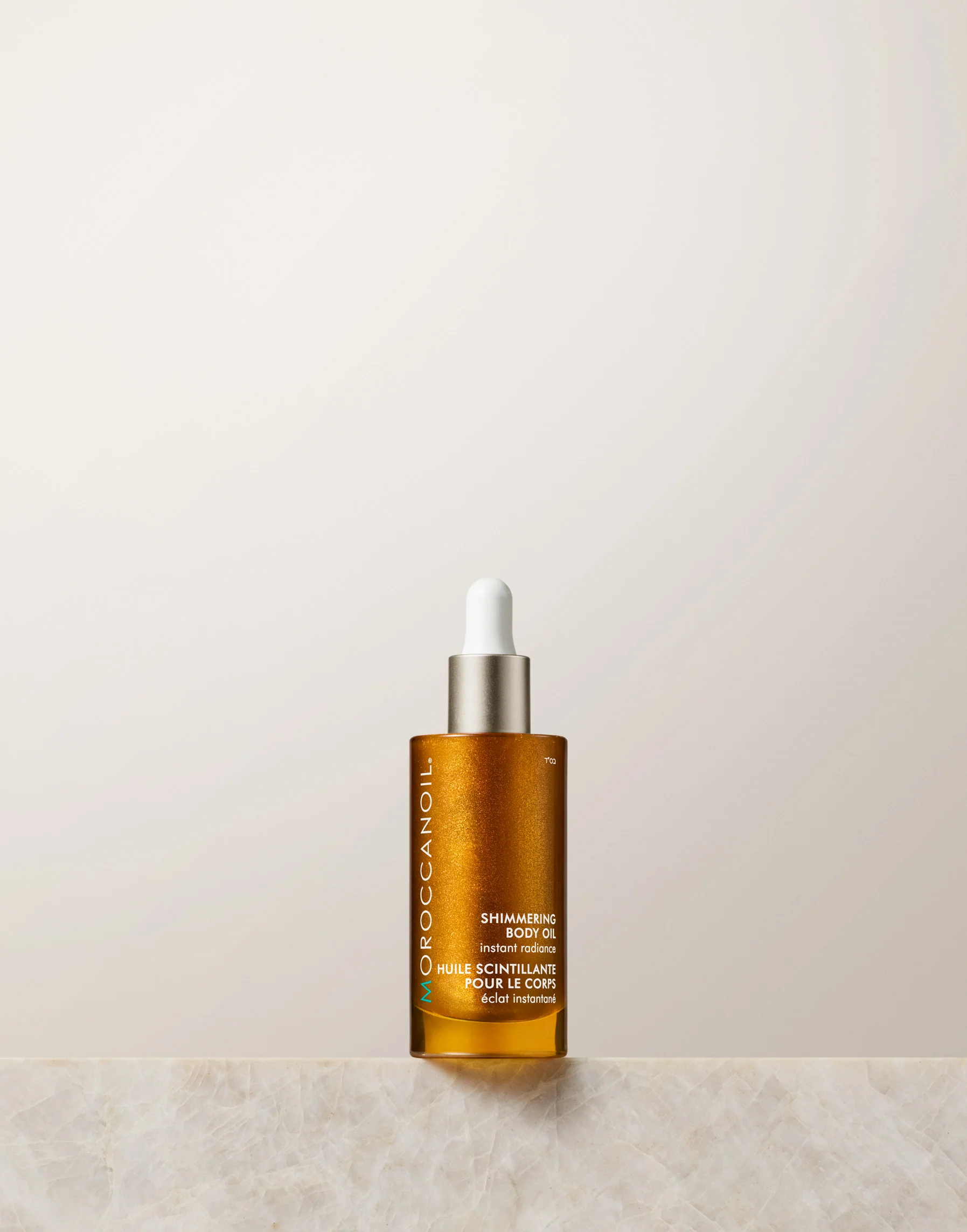 Shimmering Body Oil is een glanzende en hydraterende olie voor de huid. De gepatenteerde formule bevat een diep voedende mix van antioxidantrijke arganolie en sesamolie. Het product trekt snel in om de huid te revitaliseren en te hydrateren, terwijl zachte parelmoer mineralen glinsteren voor een stralende look en feel. Subtiel geparfumeerd met de kenmerkende Moroccanoil-geur. Parabeenvrij.