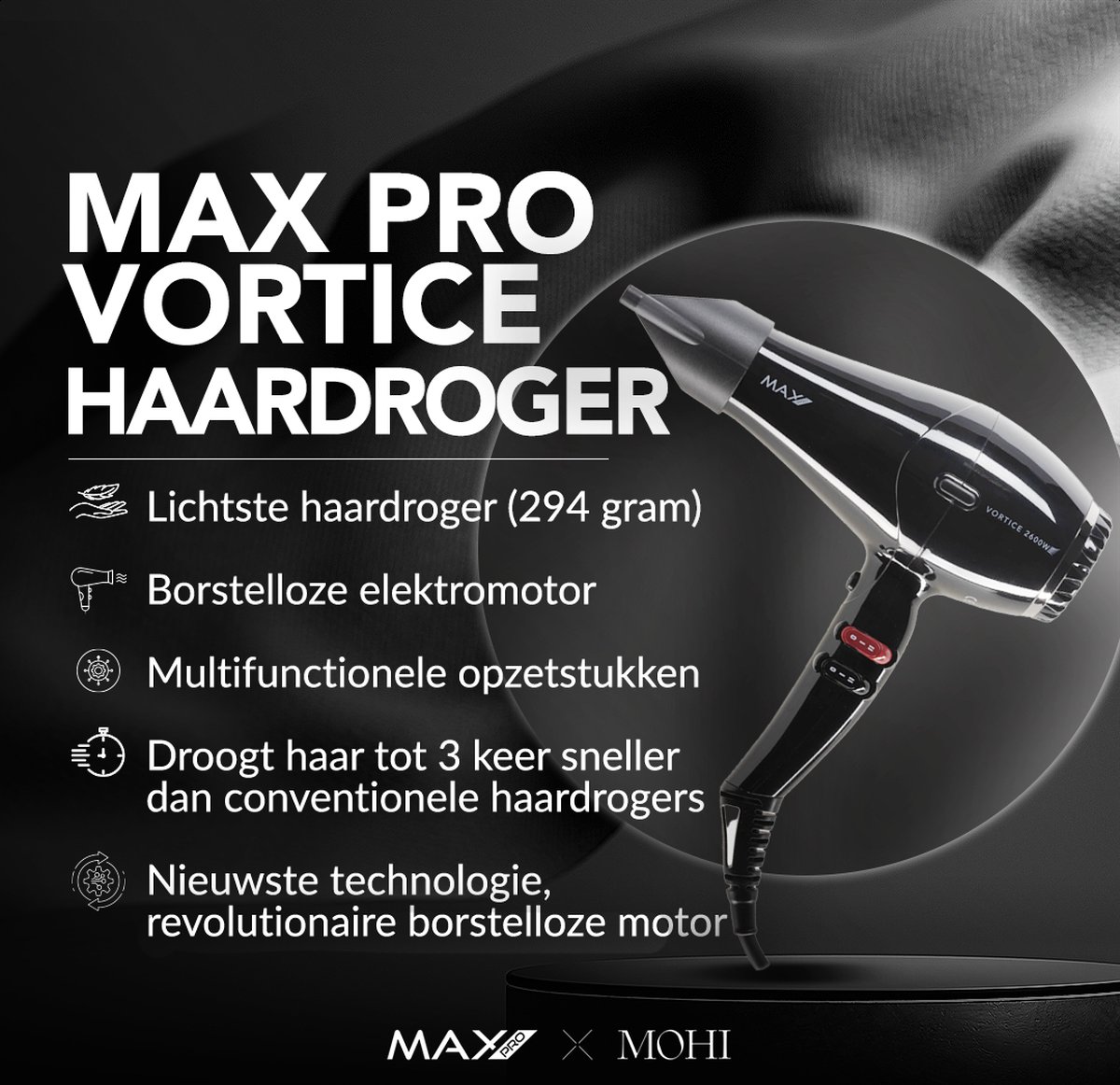 Ervaar het verschil met de Max Pro Vortice Haardroger en geniet van verbluffende resultaten van salonkwaliteit, gewoon bij jou thuis!